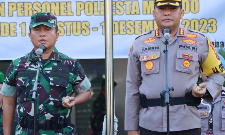 MANADO , Humas Polresta Manado- Kepala Kepolisian Resor Kota Manado, Kombes Pol Julianto Sirait, bersama Dandim Kodim 1309/Manado, Kolonel Inf Himawan Teddy Laksono, menjadi Inspektur Upacara dalam Purna Bakti Prajurit TNI Kodim 1309 Manado dan Personel Polri Polresta Manado. Upacara ini dilaksanakan di halaman apel Mako Polresta Manado pada Selasa, (23/1/2024).