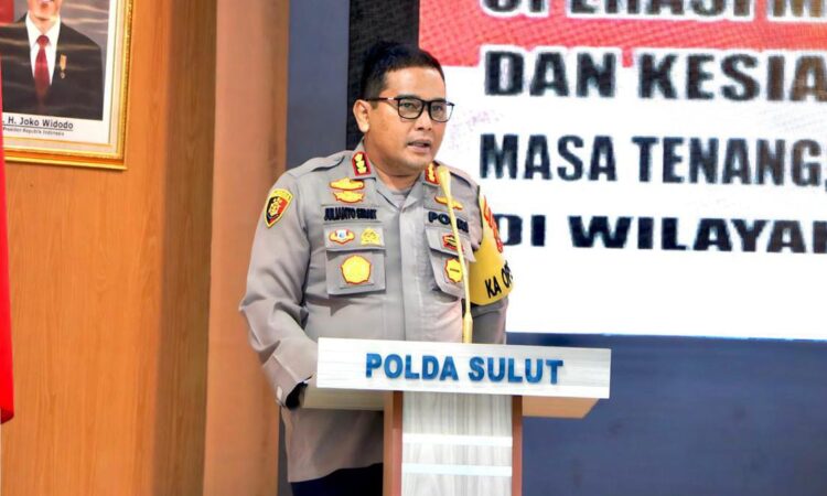 Kapolda Sulawesi Utara, Irjen Pol Yudhiawan Wibisono, memberikan arahan dan petunjuk kepada seluruh peserta rapat untuk memastikan bahwa pengamanan selama masa tenang, proses pungutan suara, dan perhitungan suara berjalan dengan lancar dan aman.
