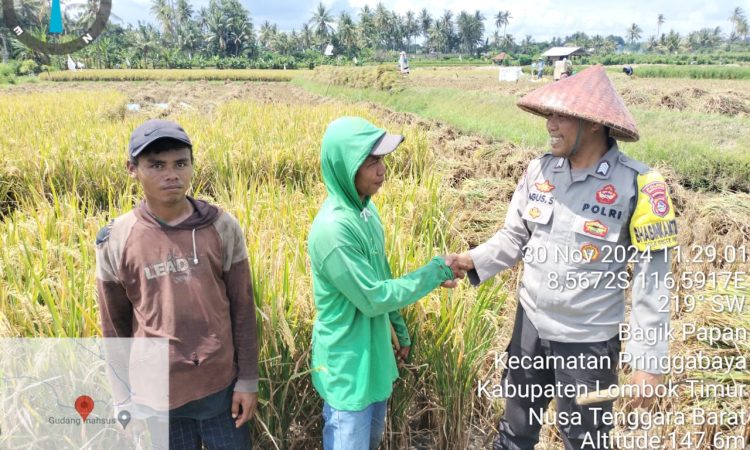 Lombok Timur — Dalam upaya mendukung Asta Cita Presiden Republik Indonesia, Prabowo Subianto, khususnya di bidang ketahanan pangan, Bhabinkamtibmas Desa Bagik Papan, Bripka Agus Salim, turun langsung ke sawah membantu masyarakat memanen padi di Dusun Bagik Papan Lauq, Desa Bagik Papan, Kecamatan Pringgabaya, Lombok Timur.