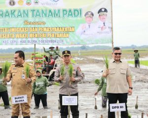 BLORA— Gugus Tugas Ketahanan Pangan Polri melakukan penanaman padi