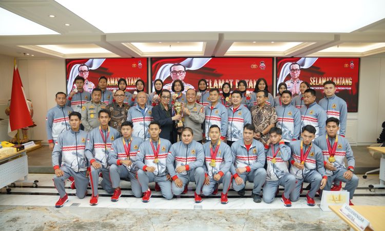Komjen Pol Dedi memberi selamat atas capaian tim Taekwondo Garbha Presisi yang berhasil menjadi juara umum ke 2 di kejuaraan yang diikuti Lembaga kepolisian dari 19 negara.