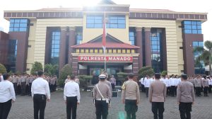 MANADO, Humas Polresta Manado- Polresta Manado menggelar apel pagi yang dirangkaikan dengan pemberian penghargaan kepada satuan kerja (Satker) dan personel berprestasi di Lapangan Apel Mapolresta Manado, Senin (10/2/2025). Apel ini dipimpin langsung oleh Kapolresta Manado, Kombes Pol Julianto Sirait.