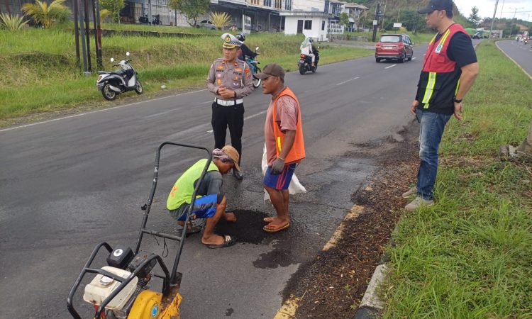 Proses penambalan dilakukan di beberapa ruas jalan utama, termasuk kawasan padat kendaraan yang sering dilalui pengendara roda dua dan roda empat. Petugas Sat Lantas turut mengatur arus lalu lintas agar proses perbaikan berjalan lancar tanpa mengganggu mobilitas warga.