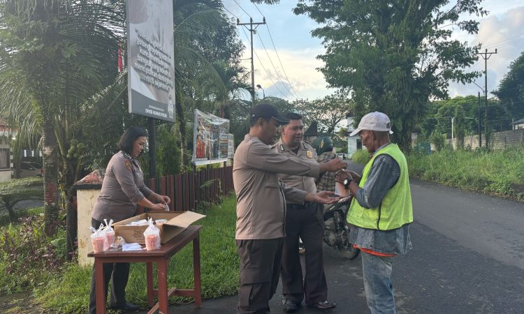 MANADO, Humas Polresta Manado – Dalam semangat berbagi di bulan suci Ramadan, Kapolsek Mapanget AKP Lesly Lihawa melalui Kasium Aiptu Yunetha Lontoh bersama Bhabinkamtibmas Bripka Michael Wentuk serta anggota SPK Bripka Jabar Ahmad membagikan takjil berbuka puasa kepada para pengendara roda dua yang melintas di depan Mako Polsek Mapanget, Selasa (4/3/2025).