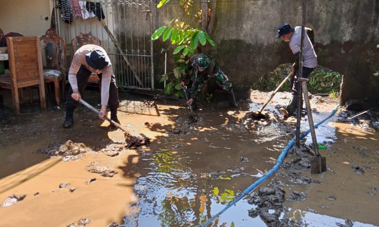 Warga bersama aparat keamanan dan pemerintah setempat bergotong royong membersihkan sisa-sisa banjir dan memperbaiki infrastruktur yang rusak akibat bencana alam tersebut. Kegiatan ini menunjukkan sinergi antara pihak kepolisian, TNI, dan pemerintah daerah dalam upaya mempercepat pemulihan dan meringankan beban warga yang terdampak.