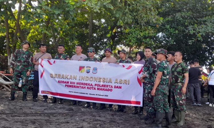MANADO, Humas Polresta Manado – Sinergitas TNI–Polri bersama Pemerintah Kota Manado menggelar Gerakan Indonesia Asri (Aman, Sehat, Resik, Indah) di sejumlah titik strategis, mulai dari Pasar Bersehati, Pantai Wisata Karangria, hingga kawasan Jembatan Kuning Sario, Jumat (6/2/2026).