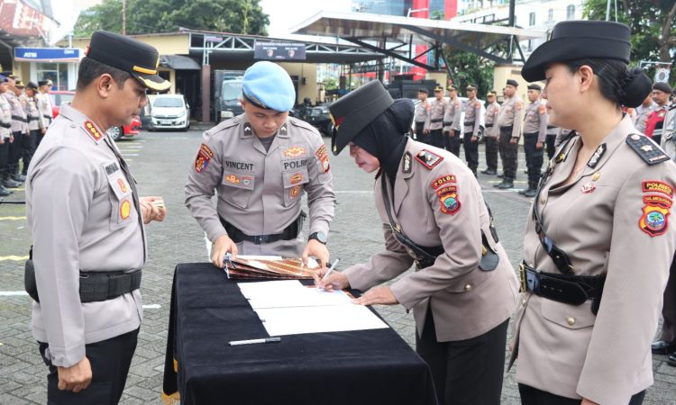 Rangkaian kegiatan berlangsung khidmat mulai dari pembacaan keputusan Kapolda Sulut, penanggalan dan penyematan tanda jabatan, pengambilan sumpah jabatan, hingga penandatanganan berita acara Sertijab dan pakta integritas.