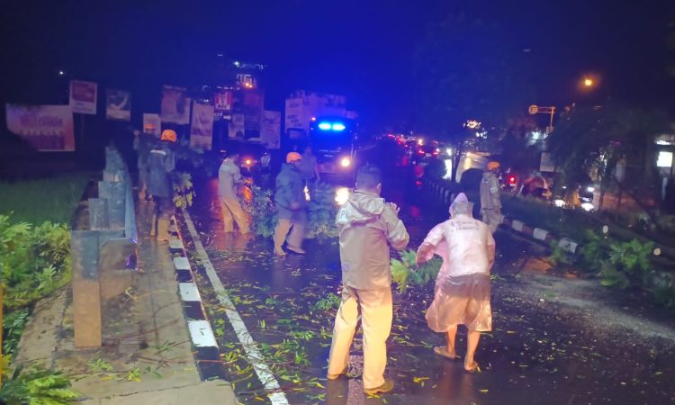 Dengan semangat kebersamaan, petugas gabungan bersama warga bahu-membahu melakukan pembersihan, mulai dari pemotongan batang, cabang, hingga ranting pohon yang menutup badan jalan.