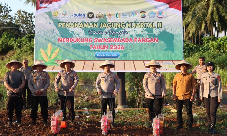 MANADO, Humas Polresta Manado – Dalam rangka mendukung program swasembada pangan nasional tahun 2026, Polresta Manado melaksanakan kegiatan penanaman jagung serentak Kuartal II yang berlangsung di Kelurahan Bengkol, Kecamatan Mapanget, Selasa (21/04/2026).